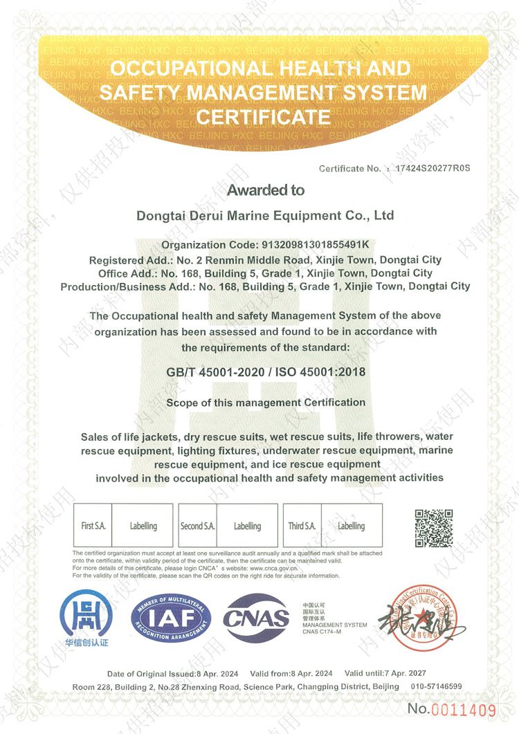 • 職業健康安全管理體系認證證書
